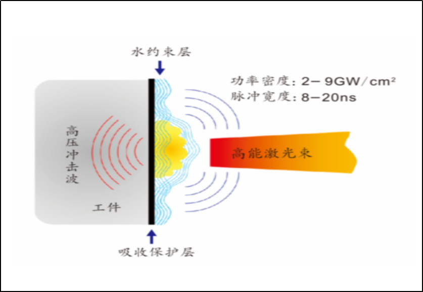 Laser shock peening (LSP) involves irradiating the metal surface with a short pulse (≤20ns) and high peak power density laser, causing the protective absorption coating on the surface to absorb the laser energy and undergo explosive vaporization. This generates a high-pressure plasma shock wave. By utilizing the mechanical effect of the shock wave, the microstructure of the surface material is altered, leaving residual compressive stress at greater depths, thereby enhancing the fatigue resistance, impact damage resistance, and fretting wear resistance of the metal material.